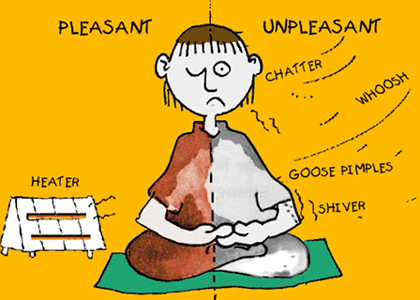 Here's that guy again, really cool - getting into the feelings: 'Pleasant / Unpleasant' - knowing without reacting - brilliant! Just noting: 'knowing only', knowing only', knowing only' . . . |