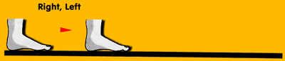 simply by noting the steps: 'right, left', 'right, left' for the first